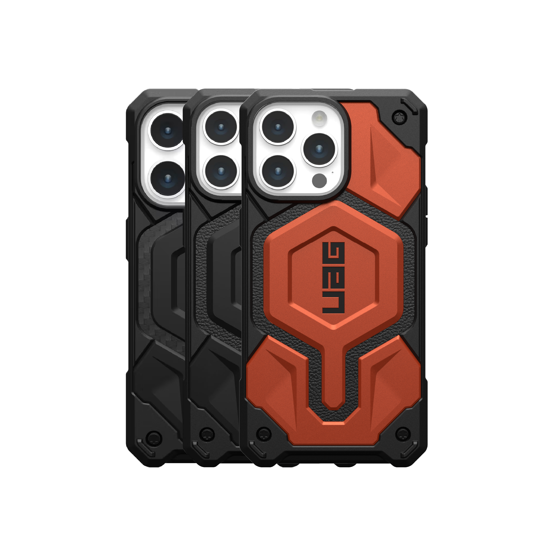 The Monarch Pro – the ultimate all-terrain, rugged protective case now featuring a strong built-in MagSafe module. Engineered with premium materials for unrivaled protection. The Monarch Pro boasts an impressive 5-layer construction, including a shock-resistant core, a distinctive signature armor frame layered with premium material choices (top-grain leather or carbon fiber), a polycarbonate shear plate, and an impact-resistant rubber surround. With seamless MagSafe charging compatibility, this case offers both advanced protection and effortless functionality. Get ready to conquer every day and explore without limits with the Monarch Pro.
