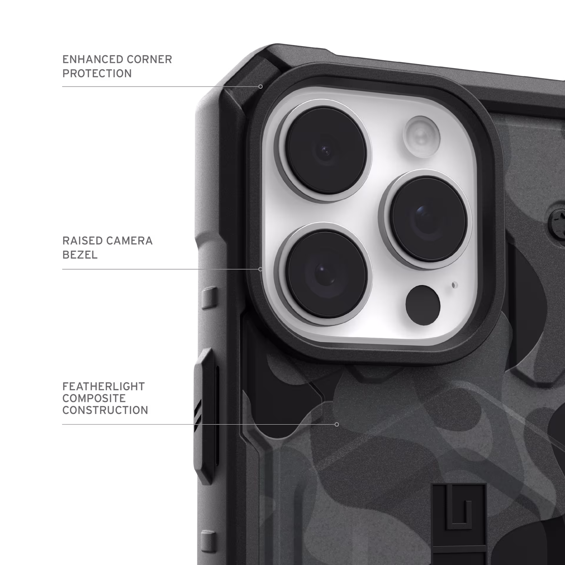 Introducing the Pathfinder SE Series, crafted to deliver the same design and protection you expect from Pathfinder but featuring a new “geo camo” print finish and MagSafe compatibility. Featuring an ultra-lightweight armor shell, an impact-resistant frame, and a hex pattern core, providing enhanced drop and shock protection to keep your device safe in any situation. The enhanced perimeter raised screen surround ensures that your display remains shielded from accidental drops and impacts, while the TPU bumpers provide added corner protection. With the powerful built-in magnet module, your device securely locks in place, ensuring seamless MagSafe charging compatibility. With the Pathfinder SE, your phone is always in good hands, ready to take on whatever adventures lie ahead.