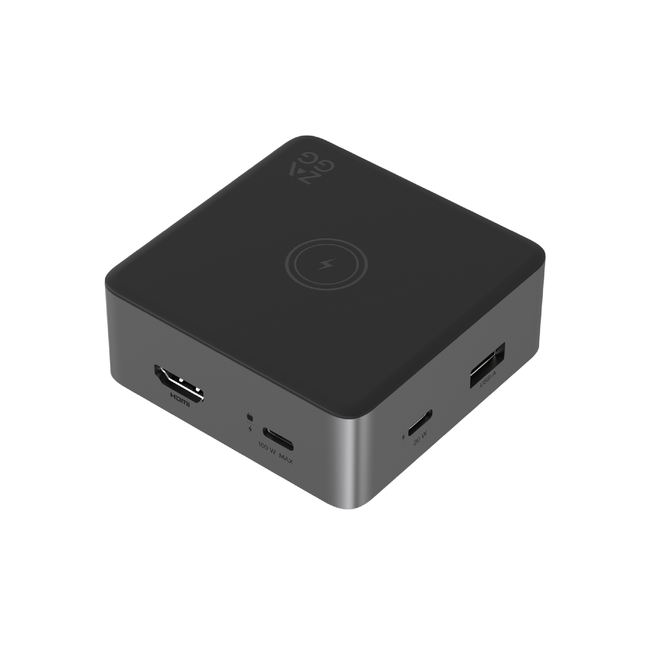 The 4-Port Hub with Wireless Charging turns that one USB-C port on your device into four ports: HDMI, USB-C PD, USB-A, and a USB-C PD 100W for charging your device. This 4-Port Hub also has a 10W wireless charging surface. Use the 4-Port Hub to plug in another screen, transfer data between devices, or even charge multiple devices. Tuck it into your bag for easy travel.